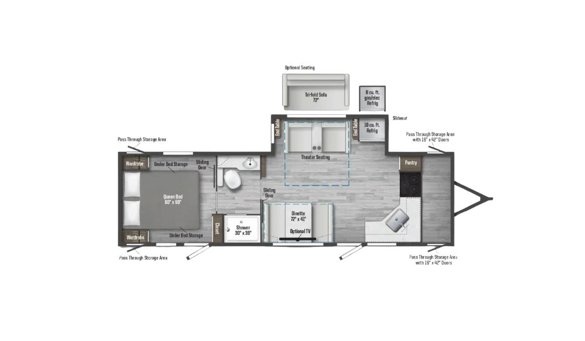 The 2024 inTech Terra Willow is the perfect RV for people wanting panoramic views and room to move around inside the travel trailer. The versatile floor plan lets you choose between two twin beds or a queen bed, and both configurations come with a dry bathroom with a separate shower. Some of the features you'll love are the upgraded entertainment package, the slide-out rear kitchen option, and tons of storage space.