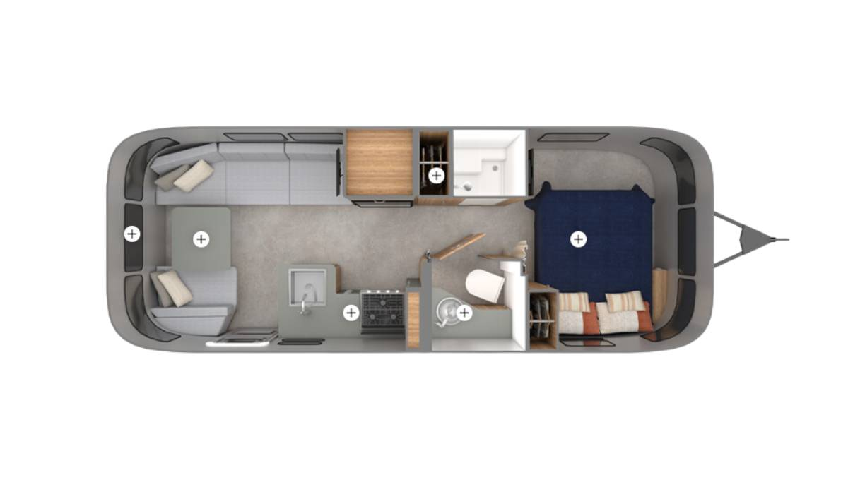 The 2024 Airstream Trade Wind is designed for off-grid adventures with an upscale twist. The versatile interior space offers a comfortable setting for living, working, and dining, and it can run the air conditioner and microwave with just the battery. The Trade Wind comes with one of the largest factory battery banks, an inverter, and solar potential in Airstream's history. Some features you'll love include a 3-inch suspension lift kit, two smart TVs, a porcelain composting toilet, a backup camera, and an optional rear hatch.