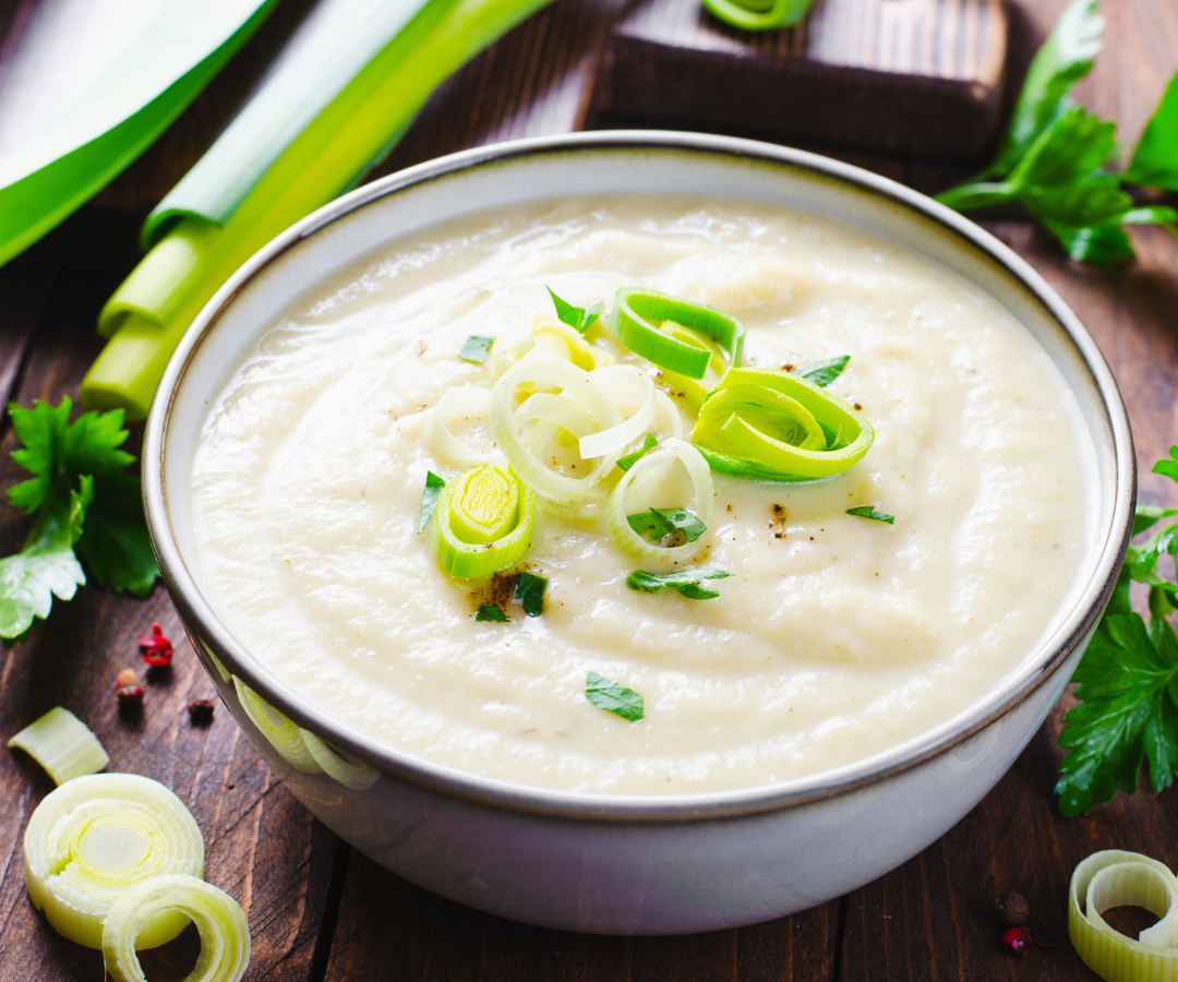 Melt the butter in the same pot (or skip bacon and use only butter for vegetarian). Sauté the leeks until soft.