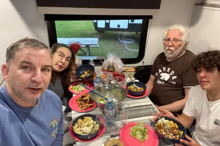 Trish's Stratus Venture 321VQB Travel Trailer 32ft cabin, 8+
