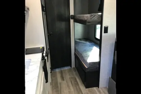 Jessica's 25’ Flagstaff Trailer with large slide and bunk