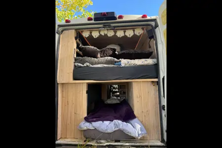 Cozy custom crafted van with Shower, Toilet, A/C , Heat, Solar and more