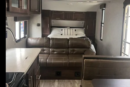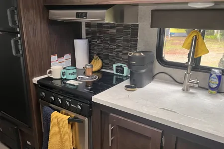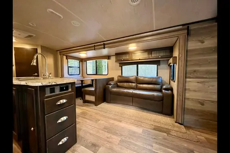 Nikki's cozy, kid friendly, pet friendly trailer.