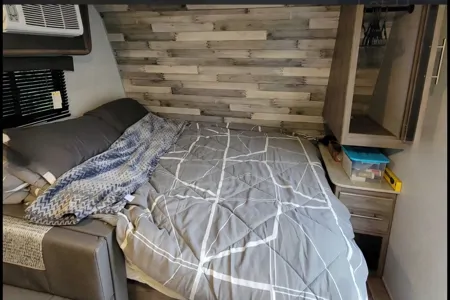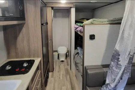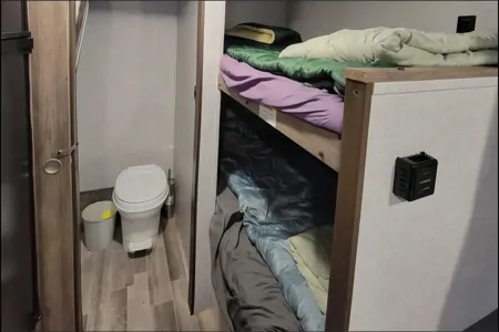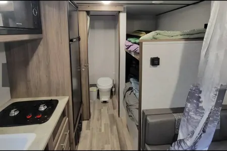 Venture in our Like New 2020 Grand River Bunkhouse Ultra-Lite Series Travel Trailer
