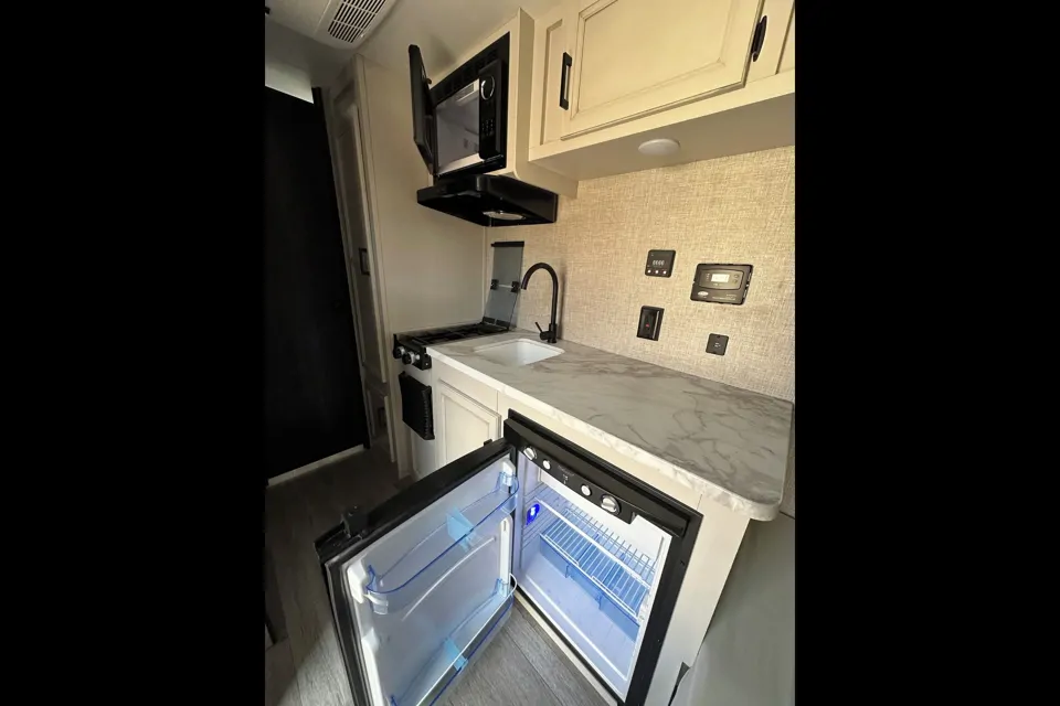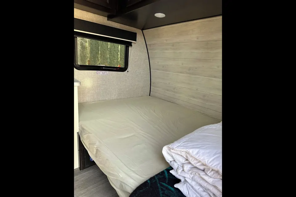 Enjoy our RV with a cozy interior and all the essential amenities. Sleeps 4 comfortably, 1 full size bed and twin bunk beds with fresh linens. Equipped with refrigerator, 2 burner stove, sink, microwave, AC and heater. Electric awning, and electric grill to enjoy the outdoors. Book now and enjoy everything this recreational vehicle has to offer.