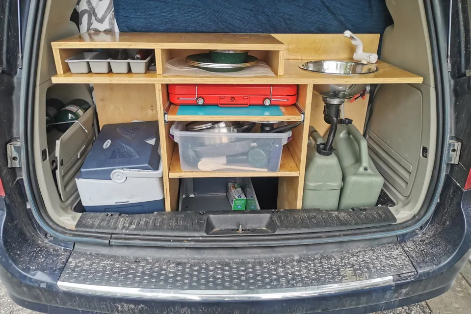 Smile Campervans are custom remade Dodge Grand Caravans maximally utilizing space behind the front seats.