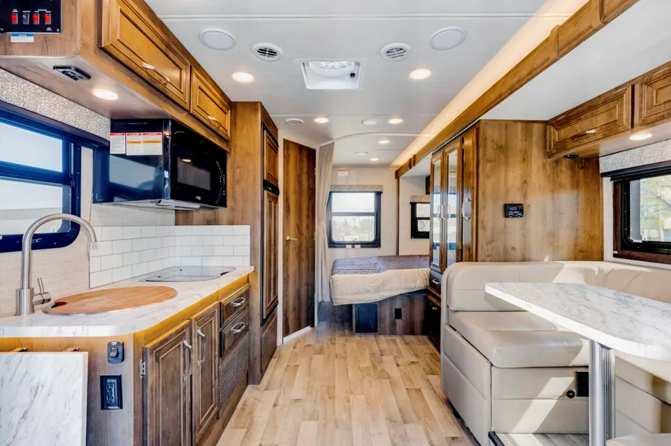 We had an absolute blast with this RV! The process was smooth and Alex took his time explaining everything about the RV. We have two young children and the RV felt very spacious even with a pack and play set up. Alex has provided all the utensils, cleaning supplies, blankets, towels, basic food/cooking items, coffee, etc. The RV was easy to drive, the generator lasted a full 2 days with the AC blasting pretty much the whole time. We would definitely rent this RV again :)