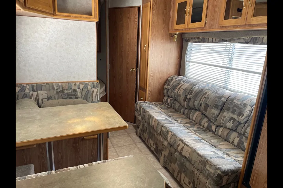 Family-friendly RV with high ceilings, very comfortable RV Queen bed with walkaround on all sides and rear bunks with blackout window coverings. Permanent solar panels installed on the roof with inside panel to help you feel informed about consumption. No power sites available? No problem! Batteries can stay charged up to 4 days even without power at your site (no microwave or outlets when not plugged in). We enjoy setting up and relaxing with very little "to do" to get settled. The full-sized RV fridge fits TONS of food including a 4 litre milk jug and the freezer is huge. A dream for families as there is enough storage room for all your games and food and snacks! Anything you can think of, this trailer has without any fuss. No slides to worry about. Justs fun and relaxation.