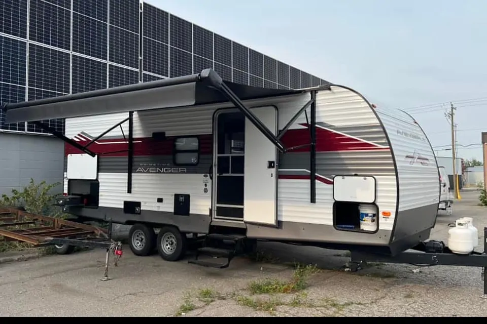 Our 2024 Avenger is the perfect camper for outdoor adventure. It offers comfortable sleeping for 8 people, full size slide-out, separate bedroom with pocket door for some privacy and fully equipped kitchen with microwave, cook top and oven. If you don't like cooking inside, no problem! The camper has outdoor kitchen that can satisfy all your cooking needs.