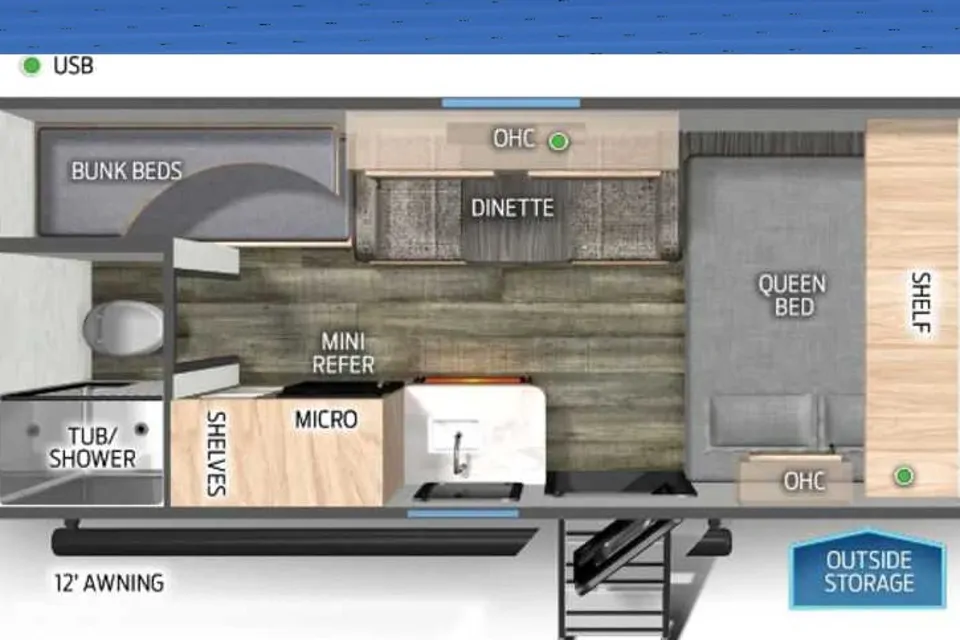 Meet Hailee, our brand new lightweight travel trailer. She's perfect for your next family camping adventure with queen for the adults and bunk beds for your littles. At 3000lbs empty this unit is towable by most midsized SUVs with ease and low fuel consumption.