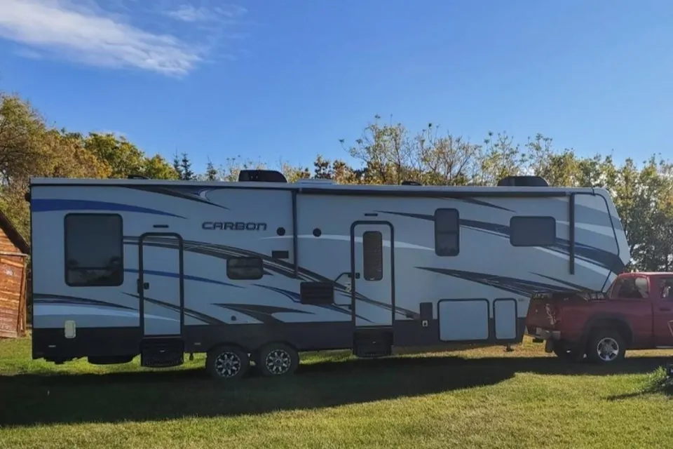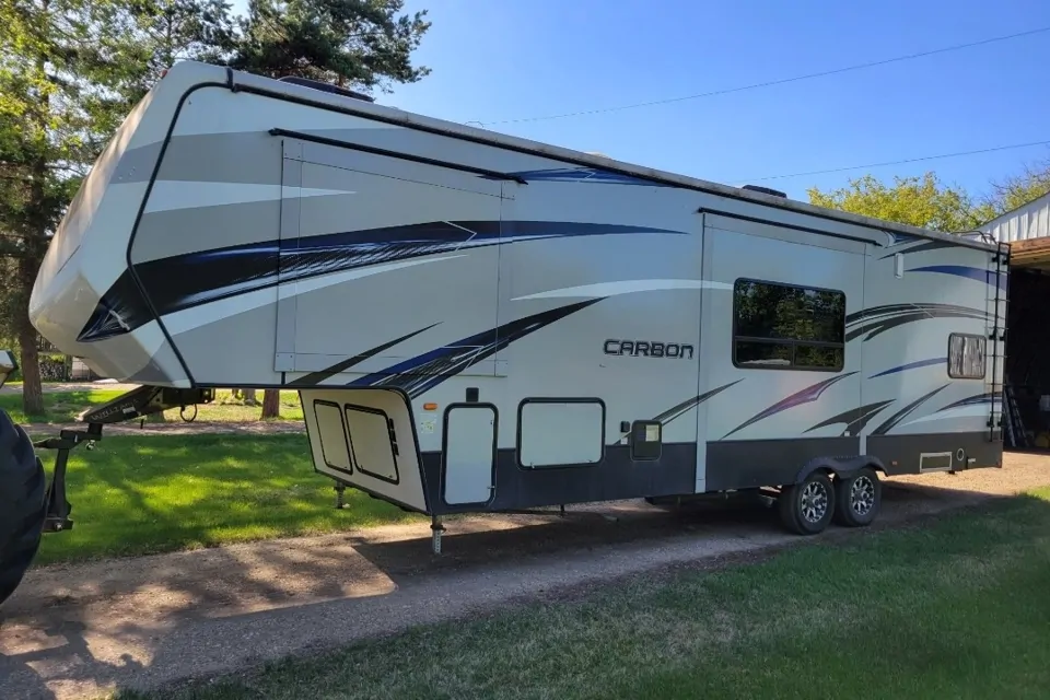 One of the shortest Fifth Wheel Toyhaulers that has a wall and for between the garage and living space. Ten foot garage will fit twoquads side by side. Built in 5,500 generator to power everything. Lots of storage space below and inside. Electric jacks front and rear. Two Air Conditioners, one for the main area and the other for the bedroom. Sleeps 6 on 3 beds, plus 1 on the couch.