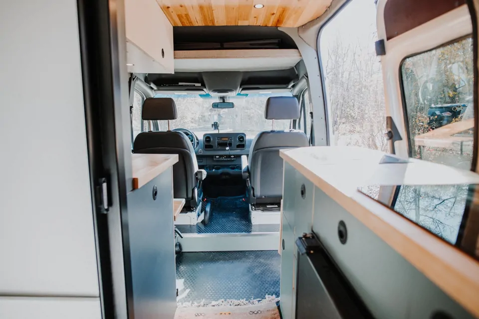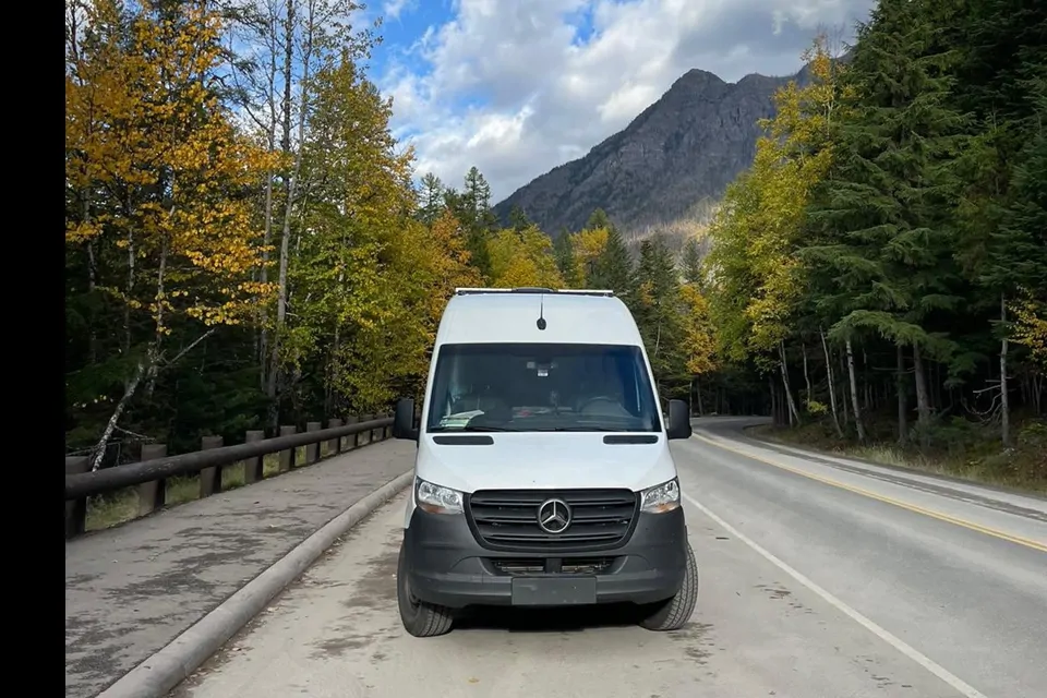 Gus the van is a 170 wheel base model (not extended) so it’s longer than most camper vans. It has 4x100 watt solar panels, 600 amp hours of battery, 44 gallons of fresh water and 4 gallon hot water tank. 2x5 gallon for the sink gray water and 1x 17 gallon for the gray water for the indoor shower. The van has a full kitchen (induction stove, toaster oven/ air fryer, kitchen sink, French press, kettle and a microwave and all needed kitchen gadgets), a couple of pop up tables and turning front seats (both driver and passenger chairs). Gus has a comfy queen sized mattress and a massive garage for all your packing needs. If you would like to use the garage as a bike rack, let us know as we can setup fork mounts (fits 2 MTB and 2 fixies).