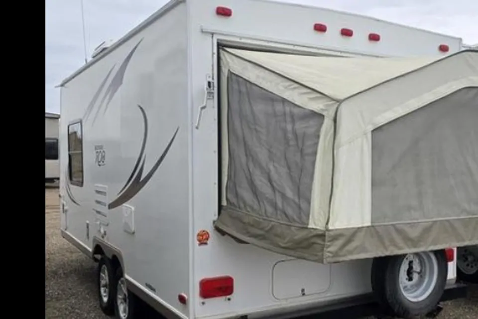 Rockwood Hybrid trailer, perfect for cozy getaways! Comfortably sleeps four can sleep 6 with the fold down couch the dinette table also turns into a bed. good for families. Pet-friendly (we have dogs too!). Well-maintained, ready for your next adventure.