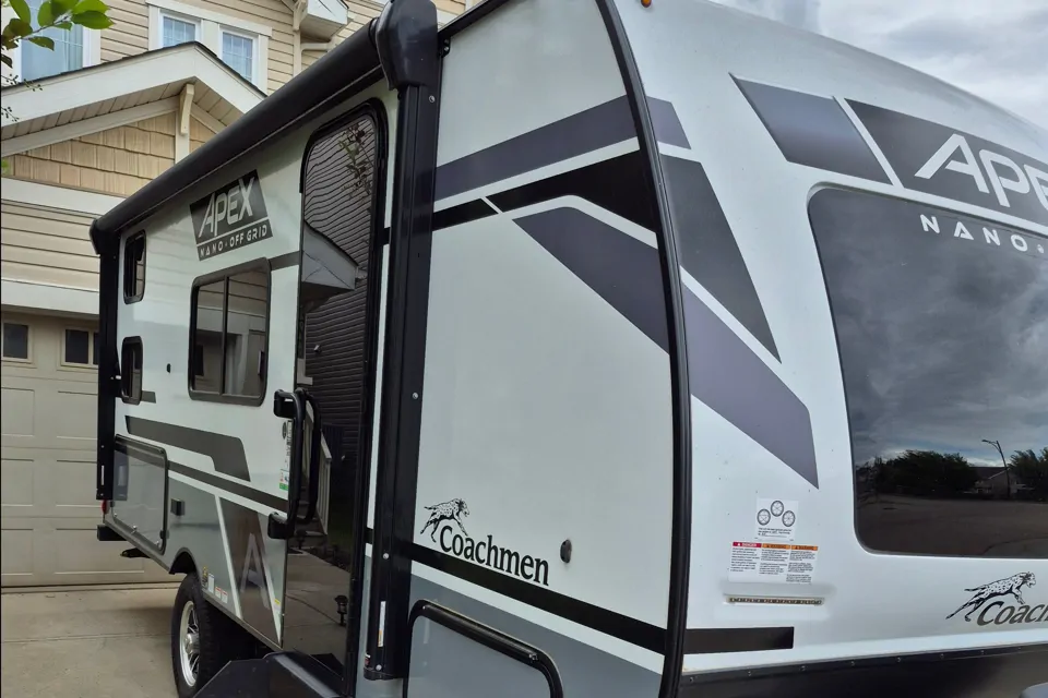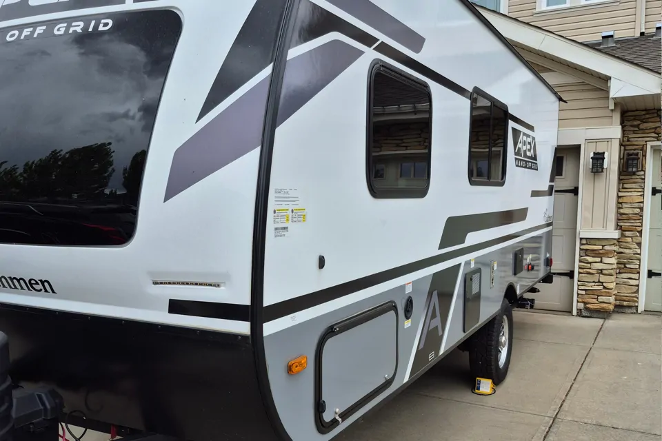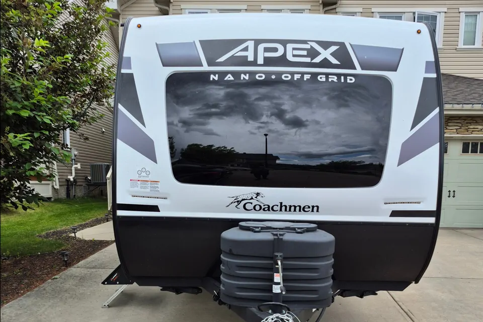 This Apex Nano 186BH travel trailer offers versatility with a front queen bed. There is a rear corner double bed bunk above a lower flip up double bed and a booth dinette that can transform into an extra sleeping space when you're not using it to enjoy a meal or play games. Everyone can have bellies full with the two burner cooktop and 6 cu. ft. gas/electric refrigerator. You can even cook outdoors with the exterior camp kitchen while staying protected by the power awning with LED lighting,