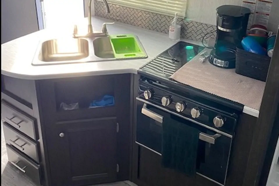 Included: Propane tank, toilet paper, pots & pans, fire extinguisher, utensils.