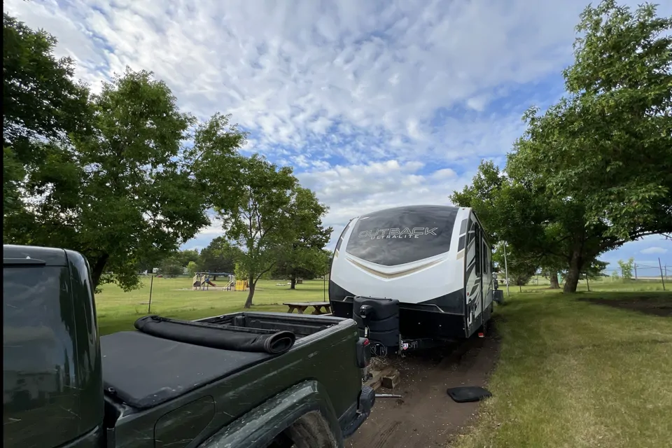 The apartment size fridge with freezer was a what caught my eye when I purchased this unit, as having a decent amount of cold storage was a key need for myself! There is a 42” LED TV and StarLink available for a fee. Two 30 Lbs propane tanks with barbecue hook up and accessories can be included as well as folding chairs and and a canopy tent cover may be included. I have a 4400 Watt portable generator and a 36 Gallon portable holding tank for off grid camping enthusiasts, but no solar at this time.