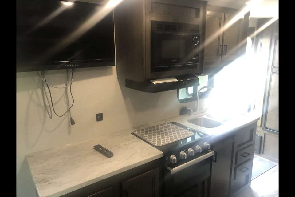 Though it’s small, it’s thoughtfully designed and has everything you need to make your trip special. We’re including a Blackstone grill, and even a bag of firewood to help you settle in and enjoy your time outdoors.Please keep in mind pull out sofa only measures at 41”wideX 65”long
