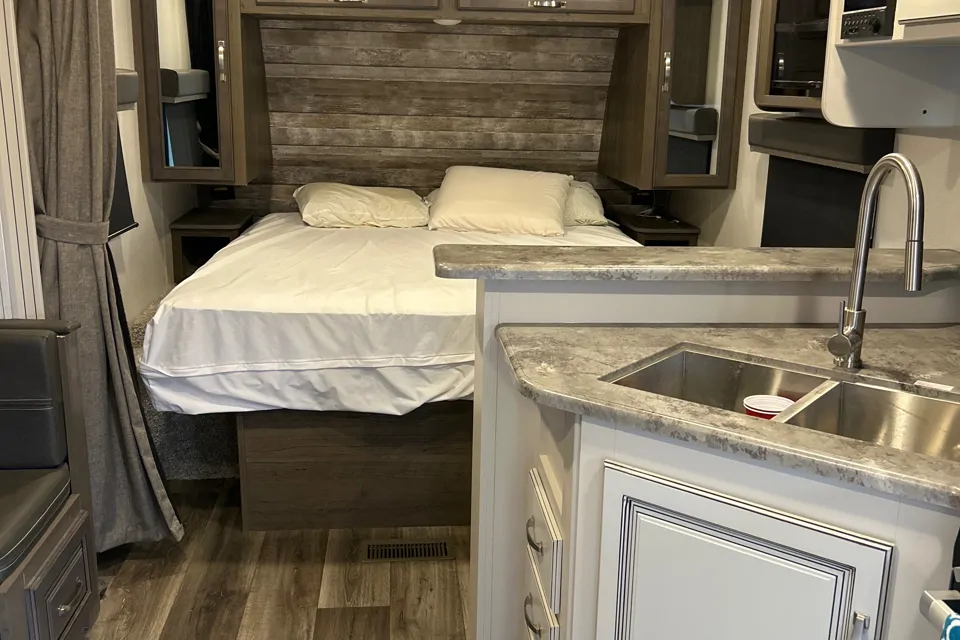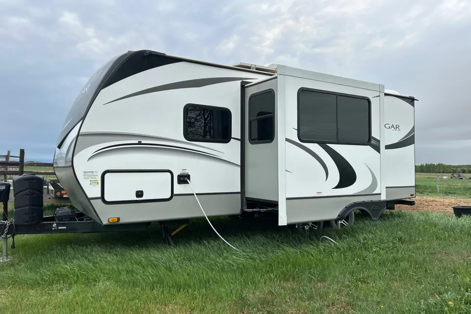This is an extremely well kept travel trailer. It is non smoking and pet free. There is a large upgraded rv king bed and spacious dining table. The solar system will allow you to charge your devices and make coffee without having power. This trailer is easy to tow (half-ton towable) and super easy to set up as the hitch has an electric jack and all the stabilizers are electric drive. Just a couple buttons and you are ready for your vacation!