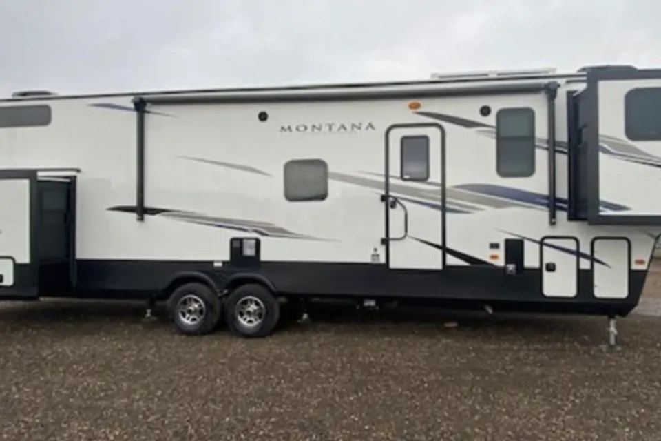 Large 5th wheel, comfortable living, go camping in luxury. Comes with chairs, three 20 pounder propane bottles, generator. Trailer will only be available for delivery and will pick up. It is a large fifth wheel and can be difficult to navigate into spots.