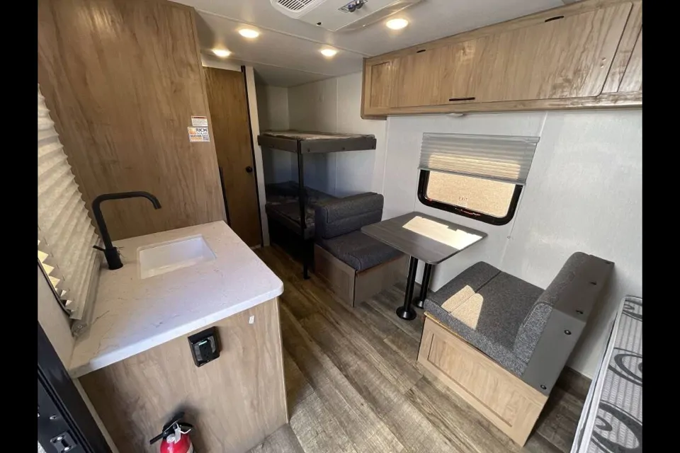 • Sleeps up to 5 (queen bed, bunks, convertible dinette)