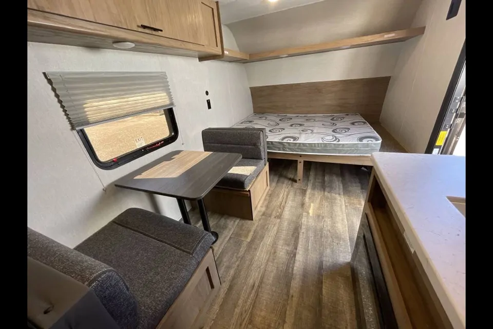 Lightweight, modern, and packed with comfort, the Wolf Den 16EV is perfect for family getaways or couples looking to explore. Under 3,000 lbs, it’s towable by most SUVs and half-ton trucks.