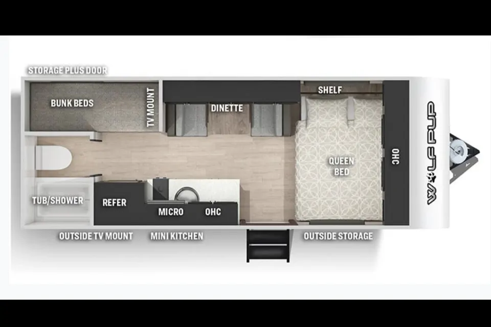 Forest River Cherokee Wolf Pup 16BHS travel trailer is lightweight and easy to tow. Comes with everything you need to get away and explore the outdoors. Sleeps up to 5 and is fully equipped with a large sink, 2 burner stove, Bluetooth radio with inside/outside speakers, fridge and freezer, water heater, AC and heat, bathroom with indoor and outdoor showers, power awning, indoor and outdoor LED lights, and solar! Front and rear stabilizers make set-up quick and easy. Book your next outdoor adventure now!