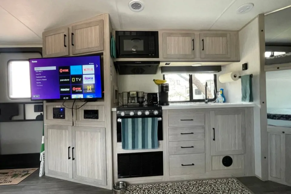 This new 2022 Cozy Camper is ready to be your home-away-from-home on your next vacation or weekend getaway. Whether it is for a couples' getaway, or a family - a perfect excursion for you and your furry friends!