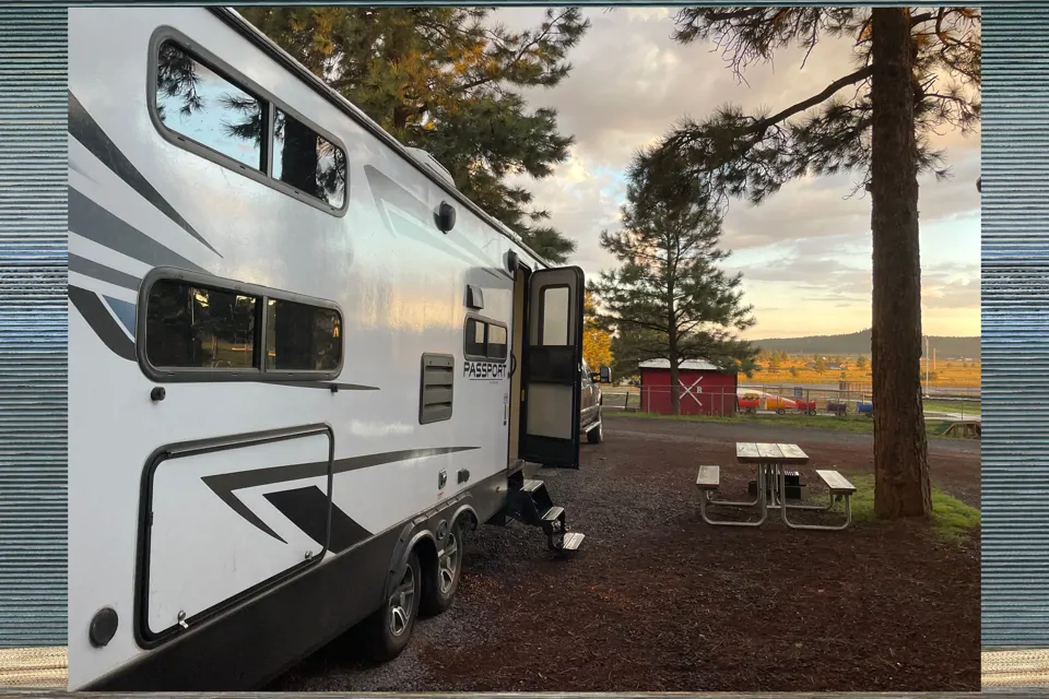 Discover the ultimate adventure on wheels with our travel trailer. Designed to provide you with the perfect blend of comfort and convenience, our travel trailer is your gateway to unforgettable journeys. Step inside and be greeted by a spacious and well-appointed interior control system with all the amenities you need for a home-away-from-home experience. This travel trailer can accommodate 7-9 guests comfortably with a slide-out, residential "60x80" queen mattress and bunk beds. From a fully equipped kitchenette with a 3-burner high output range w/ glass-top, oven, and microwave. Also, the trailer has an outdoor cooking area, solar panels with an inverter, and propane tanks included, allowing camping with or without hookups. Enjoy your favorite tunes with a built-in Bluetooth-enabled sound system, including AM/FM stereo, AUX input, and quality speakers. The interior features reading lights and bedside outlets/USBs. Enjoy the beauty of nature with all the fun with an extending awning cover for shade, exterior speakers, and awning accent lights for nighttime fun. Our travel trailer ensures that every moment of your trip is filled with relaxation and enjoyment. With its sturdy construction and reliable performance, you can confidently embark on road trips, camping excursions, or weekend getaways, knowing you have a reliable and comfortable haven awaiting your return. Whether you're a seasoned traveler or a first-time adventurer, our travel trailer is ready to accompany you on your next memorable journey. Rent our travel trailer today and let the exploration begin! (The trailer comes with all accessories necessary for RV resort hook-up. The trailer requires a 50 amp site.)