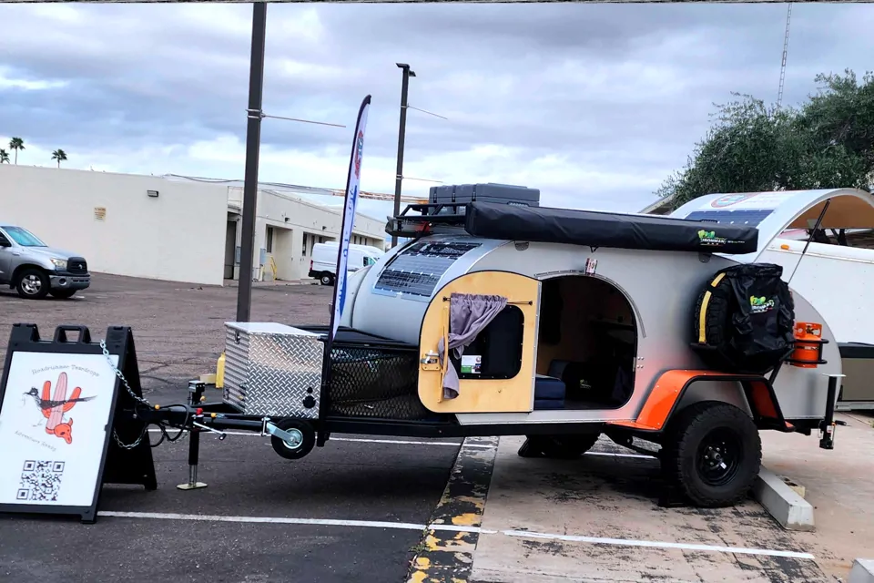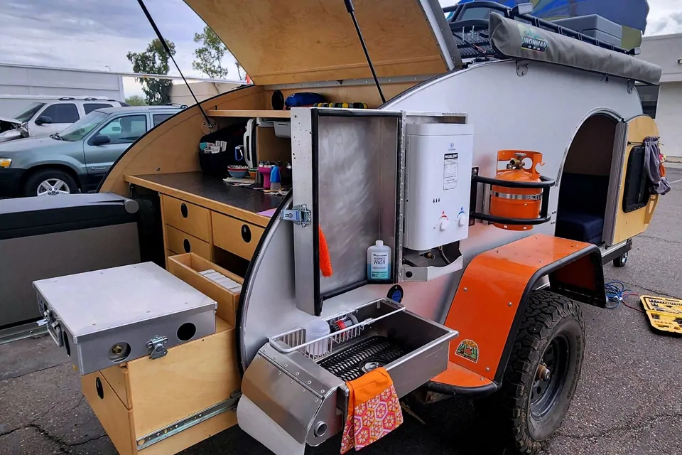 We offer our campers fully equipped,we have everything you need to have a fun adventure! For the Off-grid & Off-road enthusiast this camper is very capable or for the campground enthusiast Judy is also a shore power capable and can park in most tent only type campgrounds because she is a Teardrop. Friends or extra family can also join with our quick easy peasy slide/clip on Annex room that sleeps easily 2-3 Adults ,gear or extra living space. We also offer shower and toilet options if dry camping ,just bring your clothes and food and let us take care of everything else because it's completely outfitted for your convenience. We take the fuss out of camping ✌️.