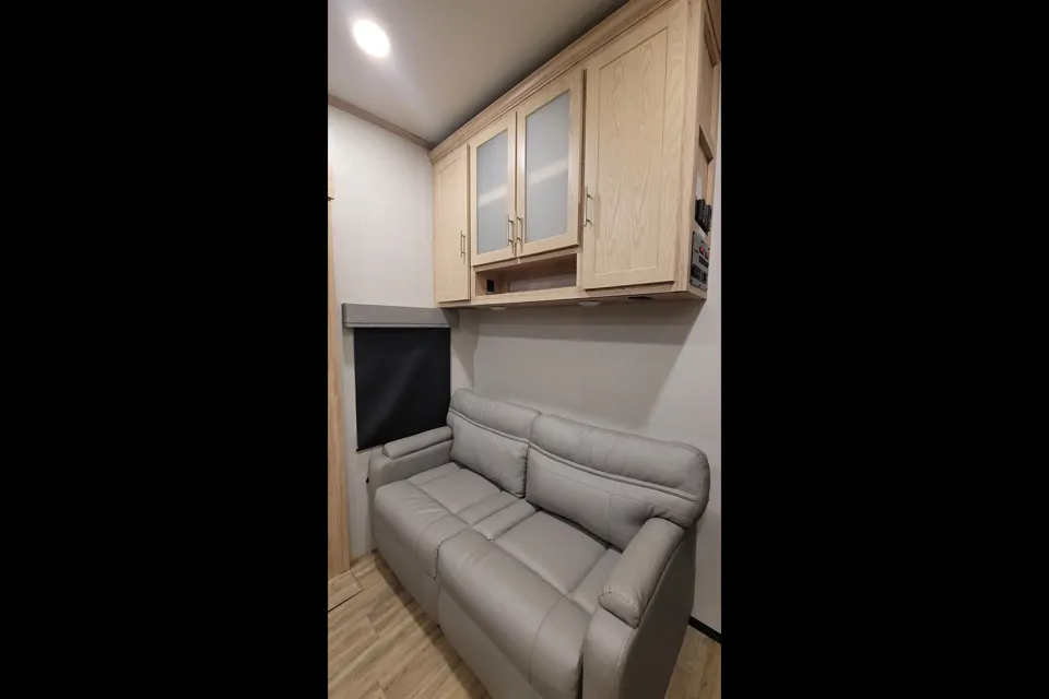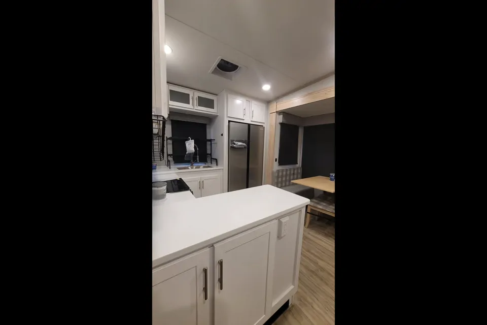 Hit the road in style with this spacious 35ft fifth wheel! Ideal for couples or small families, it sleeps 4 and offers a private bedroom, plush seating, and modern finishes throughout. The open living area is perfect for relaxing after a day of exploring, while the full kitchen and bathroom make life on the road feel like home. Whether you're seeking weekend relaxation or a long-term getaway, this fifth wheel delivers comfort and quality you can feel.