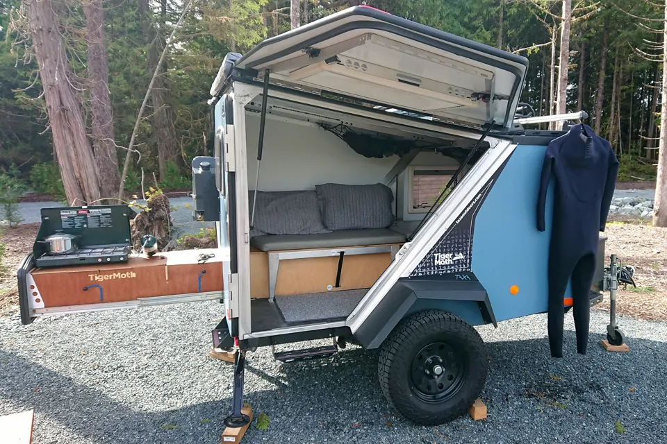 This Tigermoth is the perfect companion for your camping trip. With 12ft length and only 900 lbs (empty) it’s incredibly versatile and lightweight and can be towed by most 4-cylinder vehicles. All you need is a hitch. It has a brand-new torsion axle with 2” lift. It’s ready for your adventure.