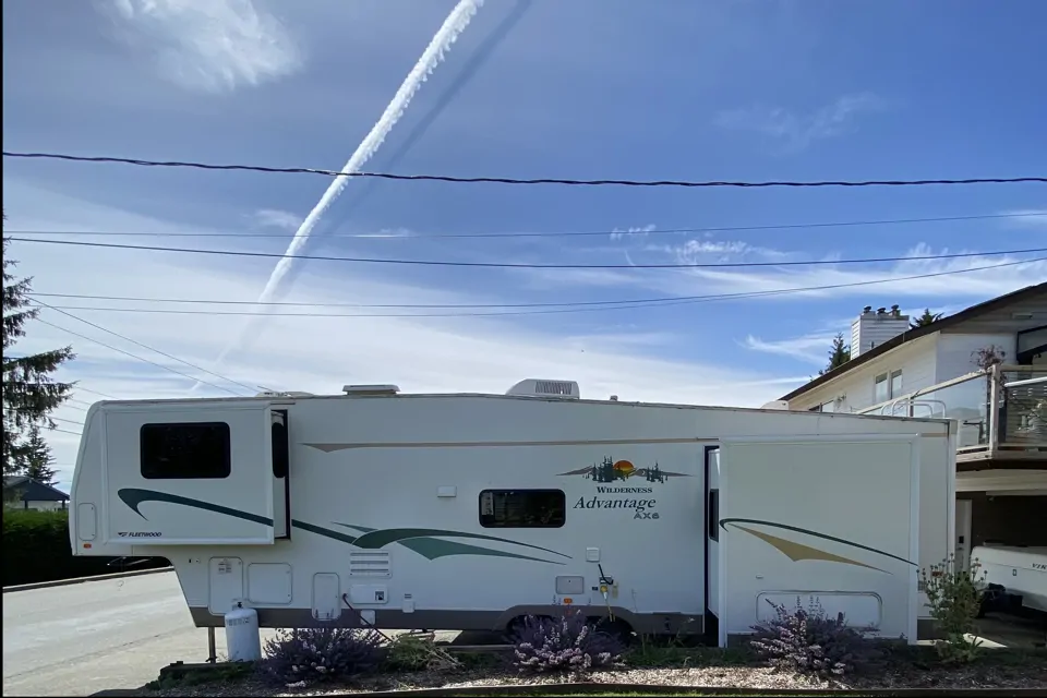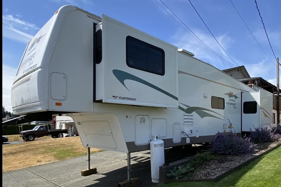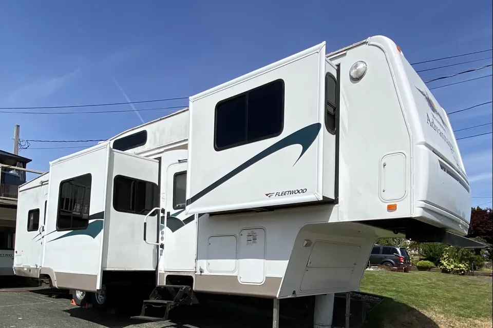 This Fleetwood Wilderness 5Th Wheel is the Vintage Lap of Luxury , with 4 Slides, 2 up front in the living room and 2 pull out couches, 1 big slide in the kitchen area and 1 slide in the back master bedroom,, lots of room for up to 6 people ,