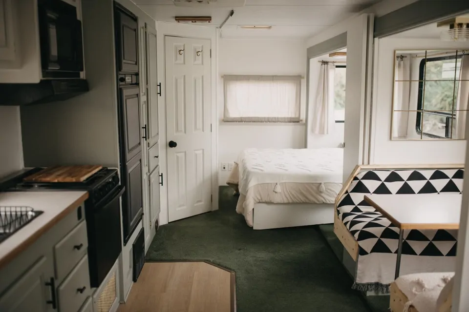 Arvie the Great is a beautifully renovated 1999 Glendale Royal Classic Class-C motorhome. Tastefully updated for cozy home away from home vibes. Arvie is 30ft long with a huge slide-out making him the perfect amount of space that's comfortable and spacious but still easy enough to drive. Equipped with a full bathroom, queen sized master bedroom (you can close it off for privacy - hellooo) a dinette / fold down bed, fold down sofa bed and a HUGE over cab bunk. Arvie also has air conditioning, heating, a full kitchen with pantry, fridge, freezer, stove, oven and microwave as well as a TV + DVD player with a cute little Nintendo Classic + preloaded games included. We've also upgraded ARVIE to have continuous power regardless of hookups or services at your site. TV, microwave etc. can be used anywhere and everywhere with our in house battery and travel generator.