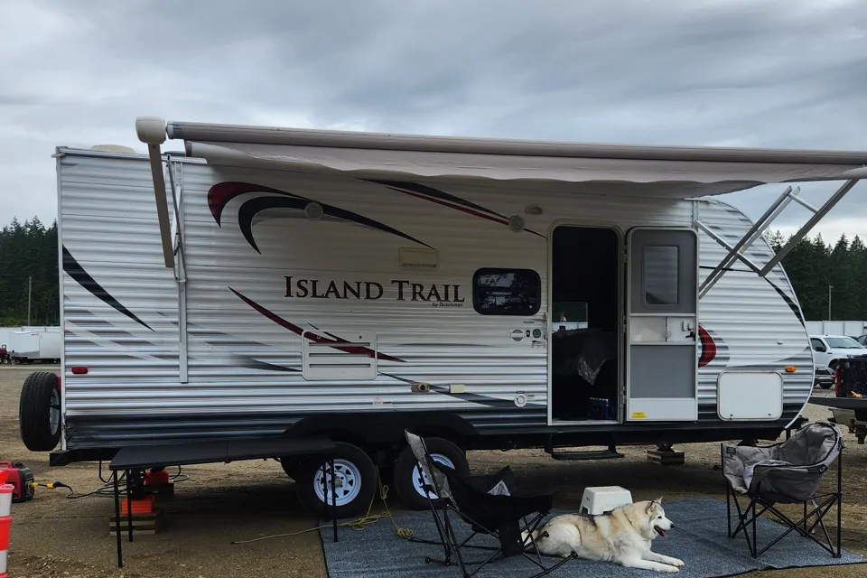 Explor the great outdoors without sacrificing comfort in this great trailer. Great for families with the two Double size bunks and full bathroom with shower and tub. The trailer has a full kitchen with a air fryer microwave, kureg, ice maker, air conditioning, furnace and electric awning.