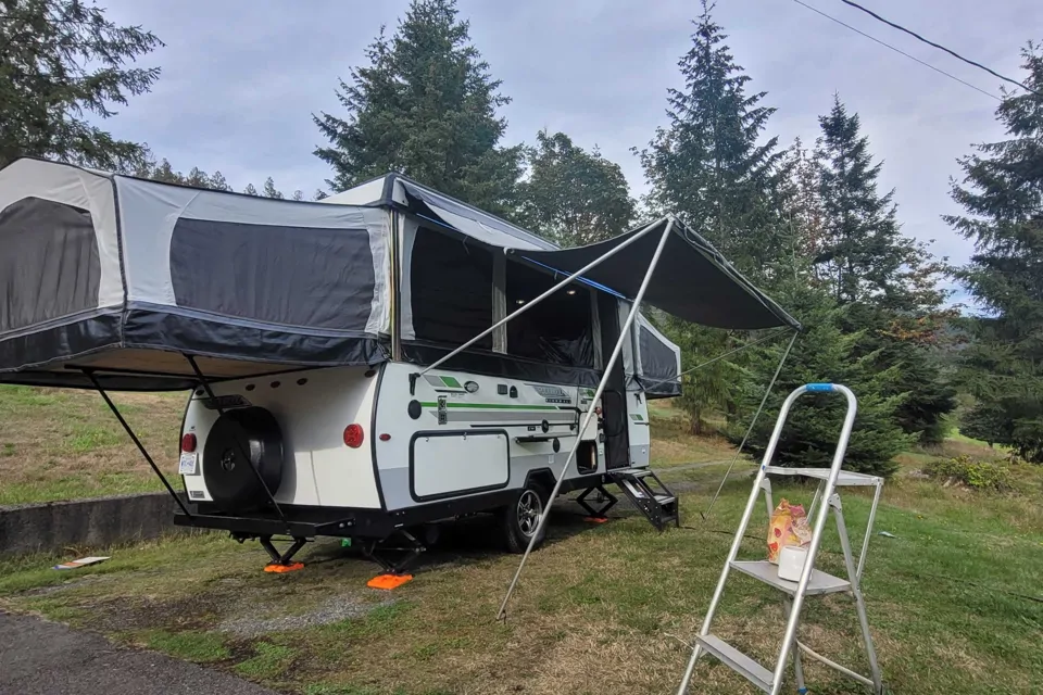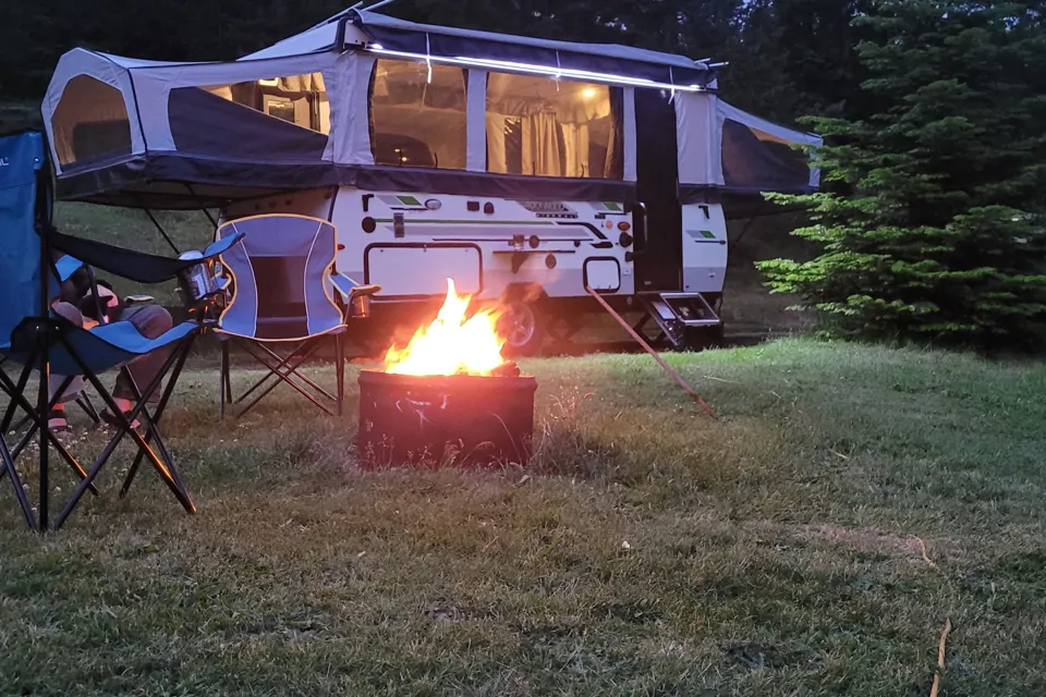 This trailer is easy to tow. Easy to set up. It has all the bells and whistles. Has a bathroom and shower. Lots of windows to look outside. Very cozy even has heated beds. It will come with a propane glass stove, double sink, shower, toilet microwave. Even an outside stove and sink. Took 2 kids camping and it was a very fun trip.
