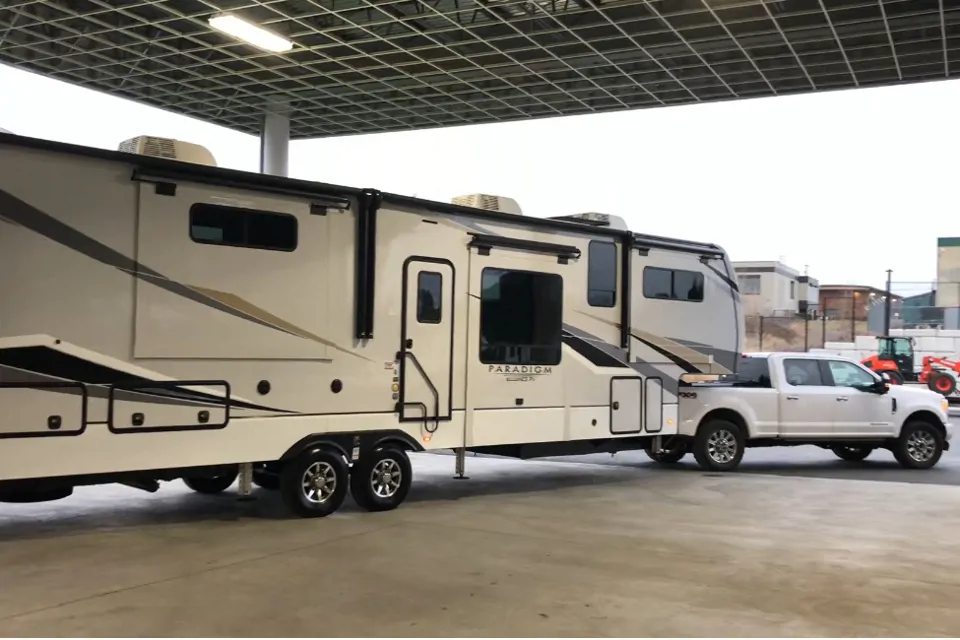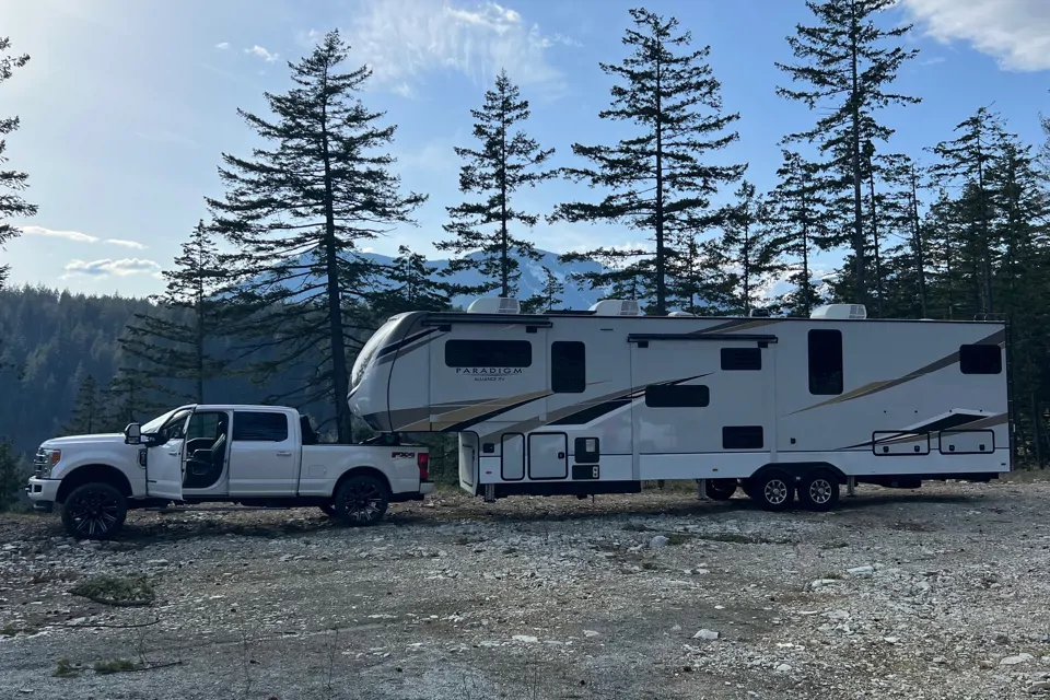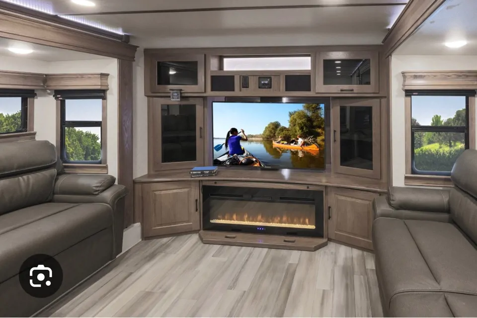 Spacious and comfortable 5th wheel with lots of storage space. King size master bed with ensuite. Full size oven and stove top. Side by side fridge/freezer. Four season package with furnace and 3 ac units.