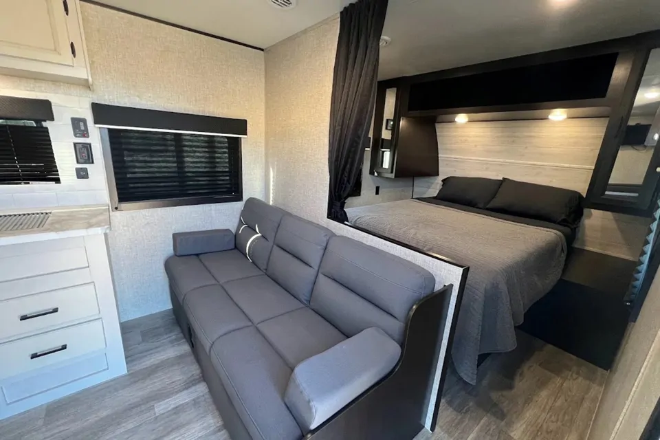 Take your next camping trip in the 2023 Jayco Jay flight travel trailer, located in the beautiful Okanagan town of Lake Country. This 29ft trailer sleep 6-8 people and has all the comforts you need for your trip. Sleeping accommodations: walk around Queen bed, sofa bed, dinnette converts to bed, double size bunk beds. Fully equipped with Air con and heating, kitchen with fridge, oven, stove and microwave. Smart TV, radio with dual inside/outside speakers with Bluetooth connectivity. LED awning, large outdoor floor matt, outdoor shower. Pick up Lake Country, a complete walk around and training on ser up will be provided during pick up, valid driver's licence is required, tow vehicle with electric brake controller and towing capacity of 7200 lbs, tow hitch and weight distribution bars supplied. Summer rentals are 3 night minimum, at $150 per night. Cancelation for wildfires are only for campsites under evac orders. Book now to secure your camping dates.