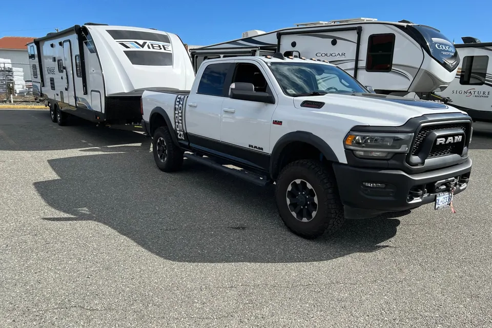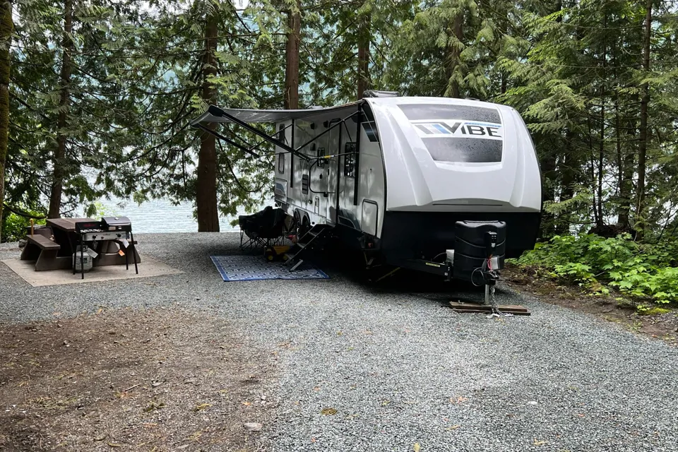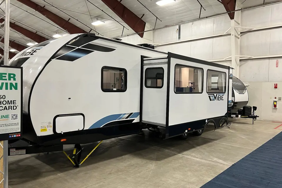 This Vibe is feature-packed with panoramic windows, oversized 12-volt refrigerators, 15,000 BTU A/C, and a walk-in shower. 2 x 30lbs propane tanks and solar to keep the batteries charged. Lots of extra storage too. Large awning on one side, and the slide out on the other. Generator and fire pit available, plus my truck is available to rent as well.