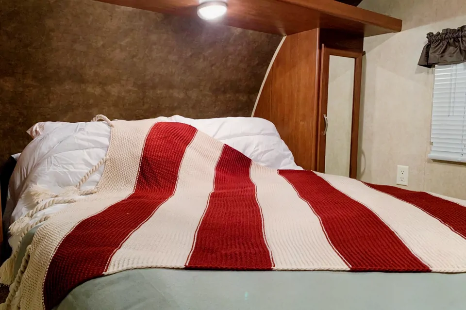 - Lesley N.juil. 2023Livré par l’hôteThis trailer was perfect for our family. The beds were super comfy and there was tons of room in the bunk beds. We couldn't say that there was anything that needed improving from our family's perspective. Ray and his wife were wonderful too. The campsite was completely set up when we arrived, all we had to do was put our stuff in the trailer and start our trip. We would definitely rent from Ray again.