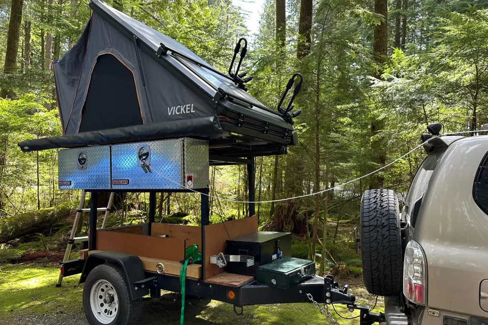 Take your camping to the next level with this fully outfitted adventure trailer, designed for comfort and convenience. Featuring a hard shell rooftop tent and essential outdoor gear, this setup is perfect for off-grid adventures, weekend getaways and road trips.
