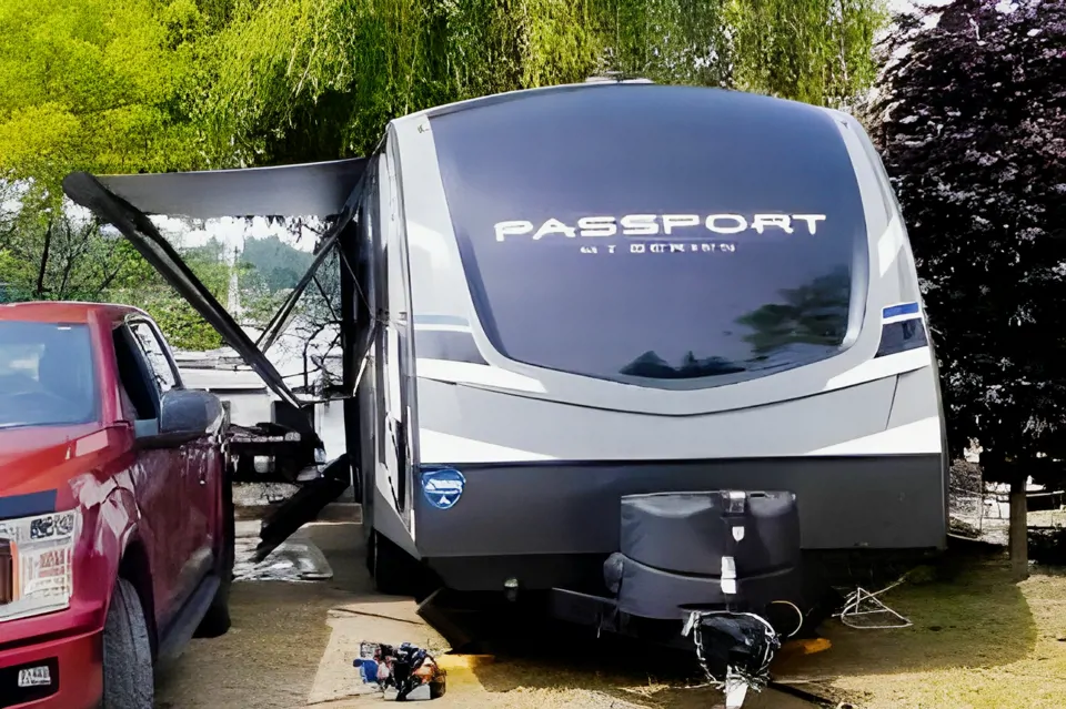 We are renting out our 2019 Keystone Passport, 22ft 4400lbs dry weight and sleeps 4 comfortably.we have a queen and a big u-dinette that folds down to a double. This trailer has Air conditioning, bluetooth inside and out, tv, full shower microwave,oven,fridge and freezer.
