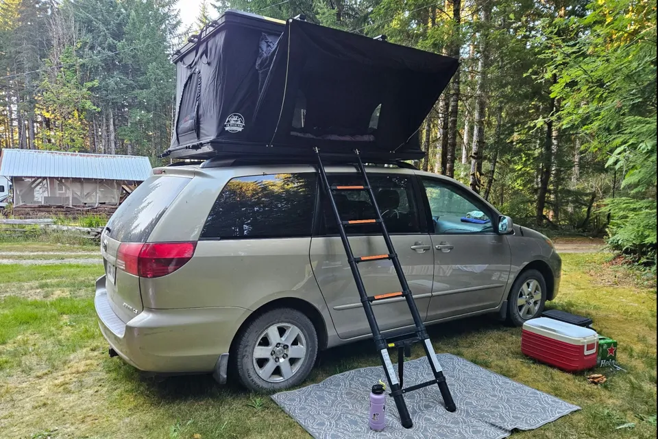 2004 Sienna Minivan with brand new hard cover Roof Top Tent that can comfortably sleep four adults (or children) as there is another potential bed in the van and seating for four. Explore Vancouver Island with everything you need for an amazing camping/ wildlife experience.