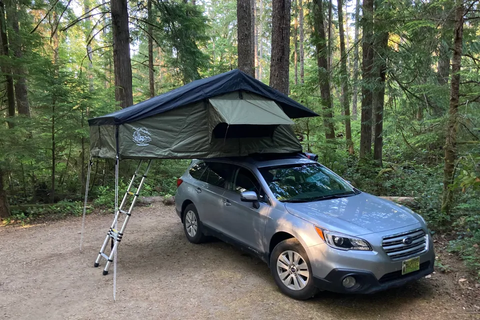 All time 4x4 Subaru with brand new roof top tent for your off-road adventures.