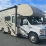 Beautiful RV. Only 24'11" not much bigger than f350 so very easy to drive, but still lots of room as one whole side is a slide. Has back up camera and Sideview cameras for backing up and changing lanes. Walk around queen in the back and queen bed above driving area. Dinette does fold down for extra sleeping. For those not hooking up, has built in generator and on board propane. Comes with everything for cooking and eating. Has child seat restraint hook. Under 25 years of age will be subject to approval. ABSOLUTELY NO off roading and ABSOLUTELY NO smoking or vaping in the rv.