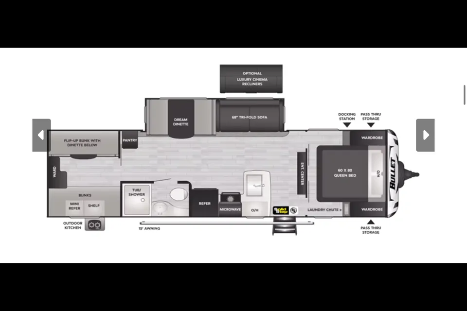 Clean and comfortable. Sleeps up to 9. 2 separate bedrooms. Solar powered. New wifi smart TV. Outdoor kitchen. Storage compartments. USB-A outlets. Bluetooth Stereo, indoor and outdoor speakers.