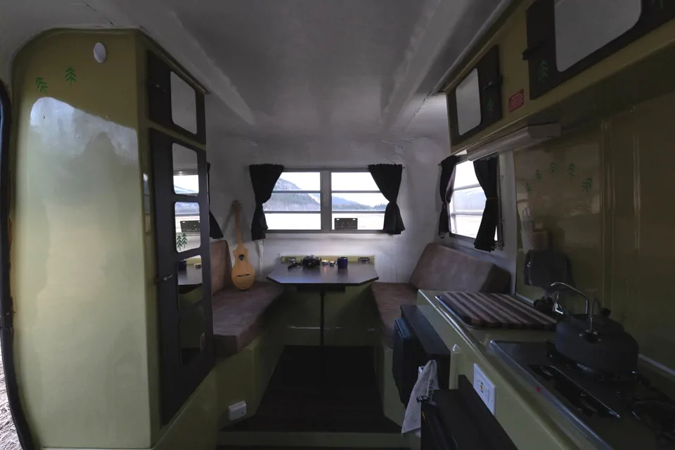 (You honestly feel like you go back to the 1970s when you step foot inside the Boler-style trailer.)