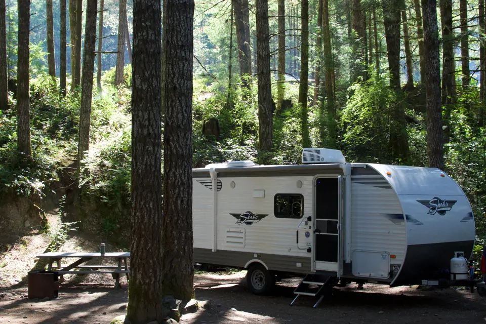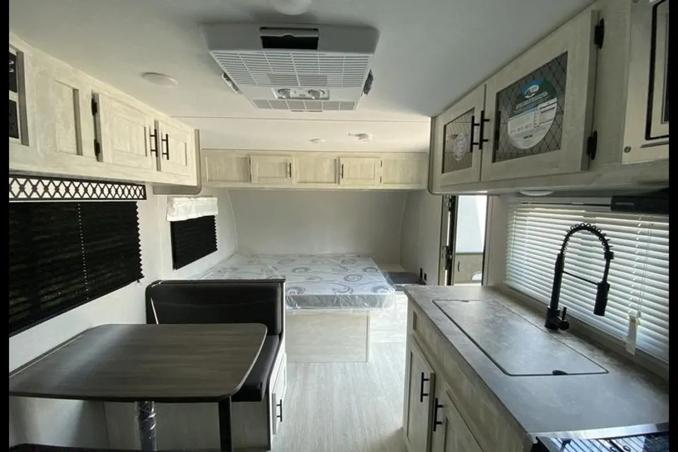 Perfect, family camping. Well-kept, adventure-ready trailer for your core-memory building. Two bunks, table bed and spacious queen bed. Features all the necessities of home, including, fridge, heat, AC, freezer, shower and toilet for those late night potty trips.