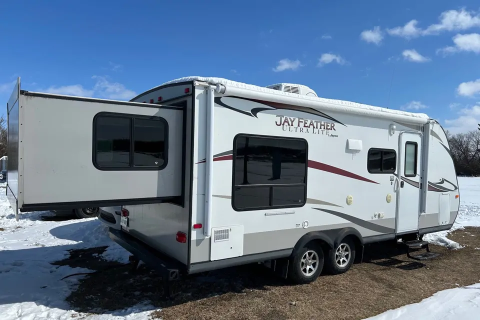 Escape in comfort with Jaybird, our ultralight Jayco X213 – perfect for families or couples! This camper sleeps up to 6 with a slide-out king bed, bunk beds, and a convertible dinette. Enjoy a fully equipped kitchen, private bathroom, and easy towing design.
