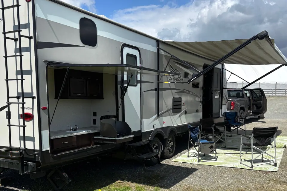 We bring the adventure to you! Enjoy camping without the hassle of towing—this 2018 Jayco Jay Flight 32BHDS will be delivered, fully set up, and ready for your stay. Perfect for families or groups who want comfort, space, and convenience.