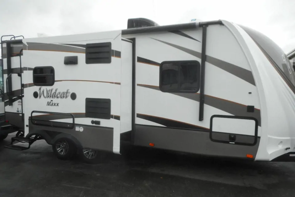 Our 2016 Forest River Wildcat Maxx is a Half ton towable travel trailer with 2 slide-outs for a spacious island kitchen with sky light. The living area has a u-shape dining table that doubles as a bed. RV comes equipped with a large bathroom including shower, and the bedroom has one Queen size pillow-top mattress.